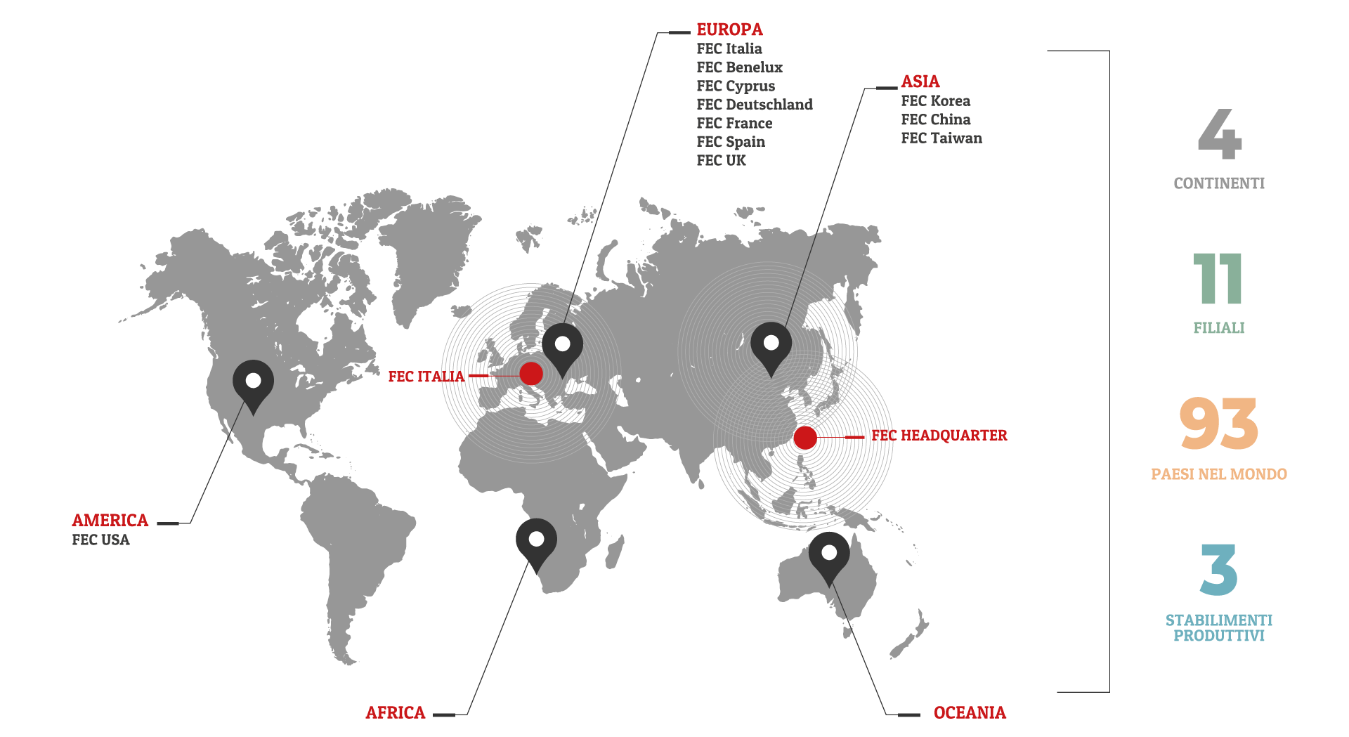 FEC Italia fa parte del Gruppo internazionale FEC (Firich Enterprises Co. Ltd.), leader mondiale in sistemi PC TOUCH SCREEN PROFESSIONALI, con una copertura territoriale, tra filiali e distributori, davvero capillare.