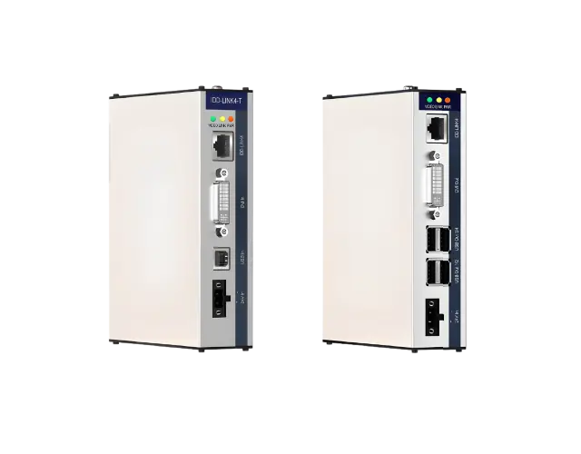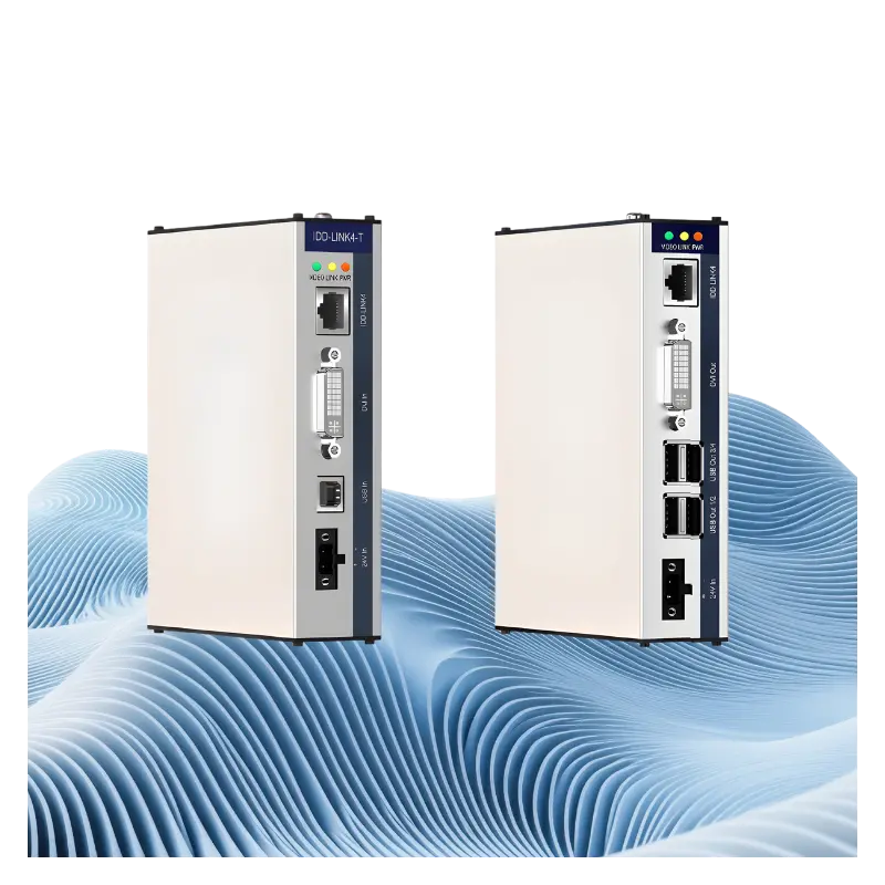 IDD-LINK4 è un sistema trasmettitore/ricevitore che consente di collegare le periferiche dell'operatore come panel PC, monitor, tastiera, mouse, audio/USB fino a 100m di distanza per un utilizzo in remoto.