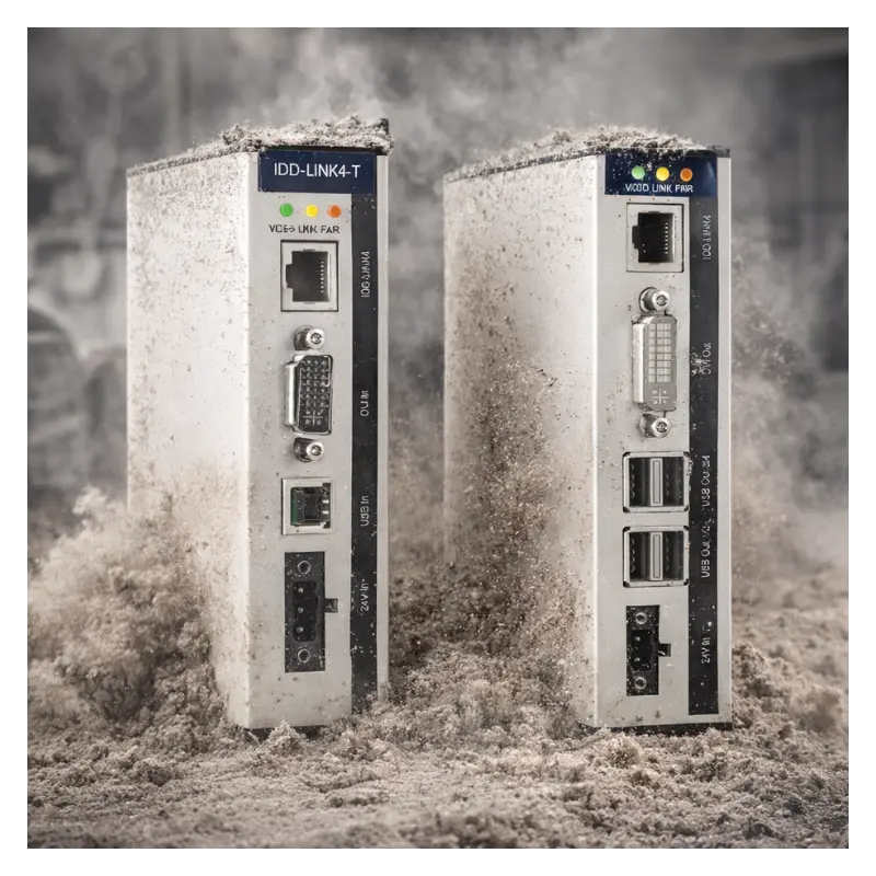 IDD-LINK4 è un KVM extender che consente di remotare le operazioni di controllo delle periferiche di produzione fino a 100m di distanza collegandole tramite cavo CAT6 a un Automation Controller.