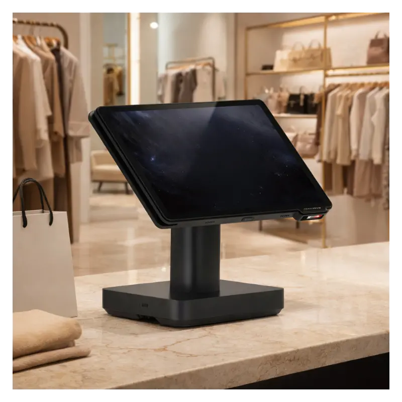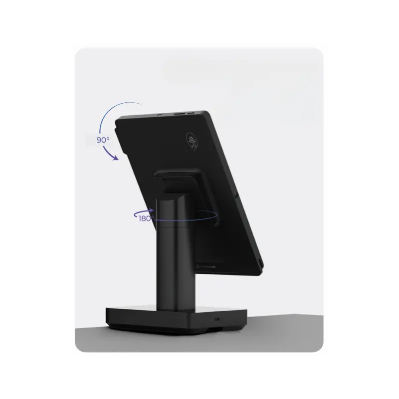 Grazie al suo design minimale ed elegante, è adatto all'inserimento in numerose tipologie di negozi, anche in quelli più esigenti come il fashion retail. La sua forza, però, non è solo estetica ma anche pratica: il tablet android 11" viene montato su una base che permette la rotazione del perno di 180° e quella dello schermo di 90° ed è dotata di un sistema di sgancio rapido che consente di utilizzare il tablet "hands-free".