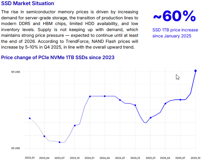NAND Flash Prices to Rise 5–10% in 4Q25